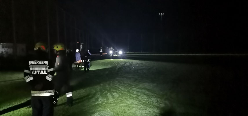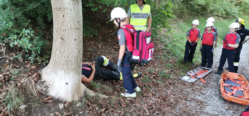 Nach der Lageerkundung durch dem Übungseinsatzleiter wurden folgende Aufträge erteilt: Absichern der Unfallstelle, Brandschutz und Beleuchtung aufbauen, Bereitstellungsplane auflegen und Geräte für die Menschenrettung dort ablegen, Stabilisieren des Unfallfahrzeugs mit Stab-Fast-System, Einsatz des inneren Retters zum Betreuen der verletzten Person, sowie Menschenrettung mit Hilfe des Spine-Boards durzuführen. Diese Aufträge wurden positiv erledigt. Danach gab es ein kurzes Feedback von der Übungsbeobachterin.