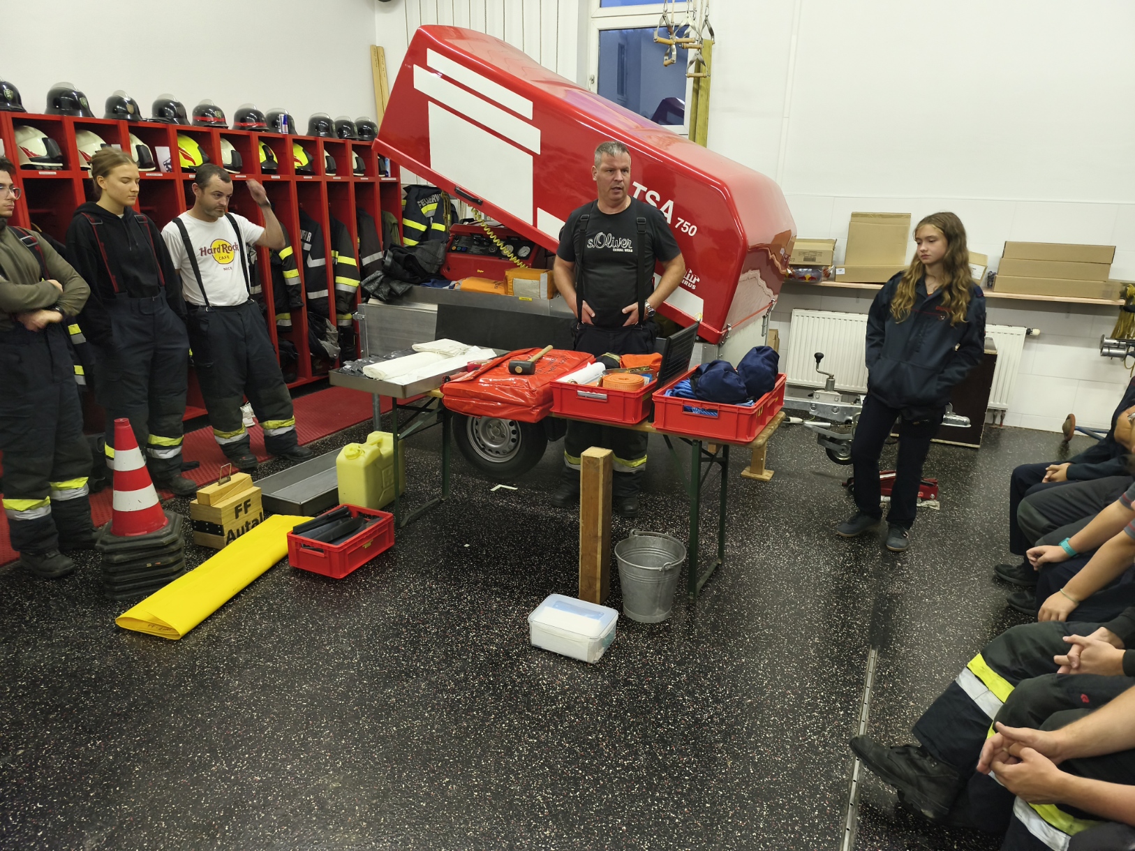 Am 26.09.2025 führte die FF Autal die Monatsübung „September“ durch. Das Thema der Übung war dieses Mal der Schadstoffeinsatz. Zuerst wurde im Lehrsaal eine PowerPoint-Präsentation durch OBI Roland Blindhofer vorgeführt, beinhalten unter anderen die GAMS- Regel und die 3A- Regel. Nach der Theorie ging es praktisch in der Fahrzeughalle weiter. Es wurden die Übungsteilnehmer in zwei Gruppen aufgeteilt, mit dem Auftrag alle Geräte und Materialien für den Schadstoffeinsatz aus den Fahrzeugen zu räumen und bereitzustellen. Im Anschluss wurden die Einsatzmöglichkeiten besprochen. Jeder Übungsteilnehmer hatte die Möglichkeit Abdichtungen unter Einsatz von Chemieschutzhandschuhen zu beüben. Des Weiteren wurde ein Not-Dekontaminierungsplatz aufgebaut. Danke an OBI Roland Blindhofer für die Ausarbeitung und die Durchführung der Übung.