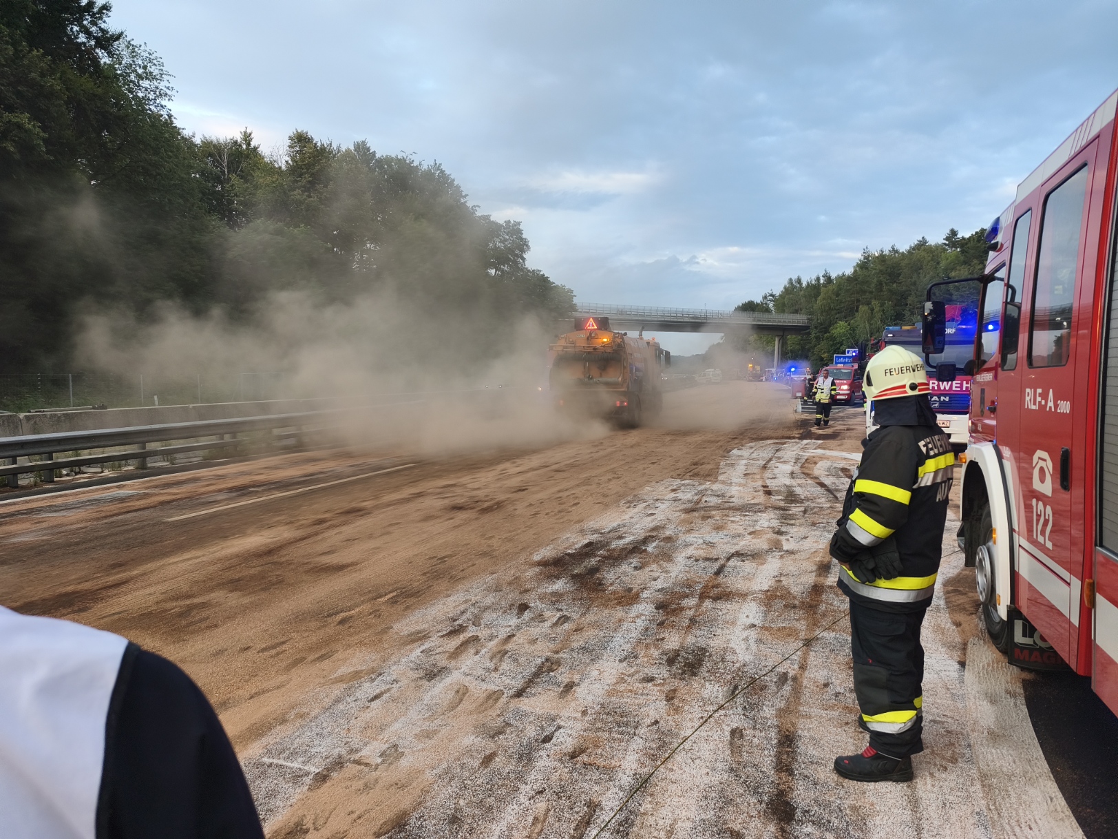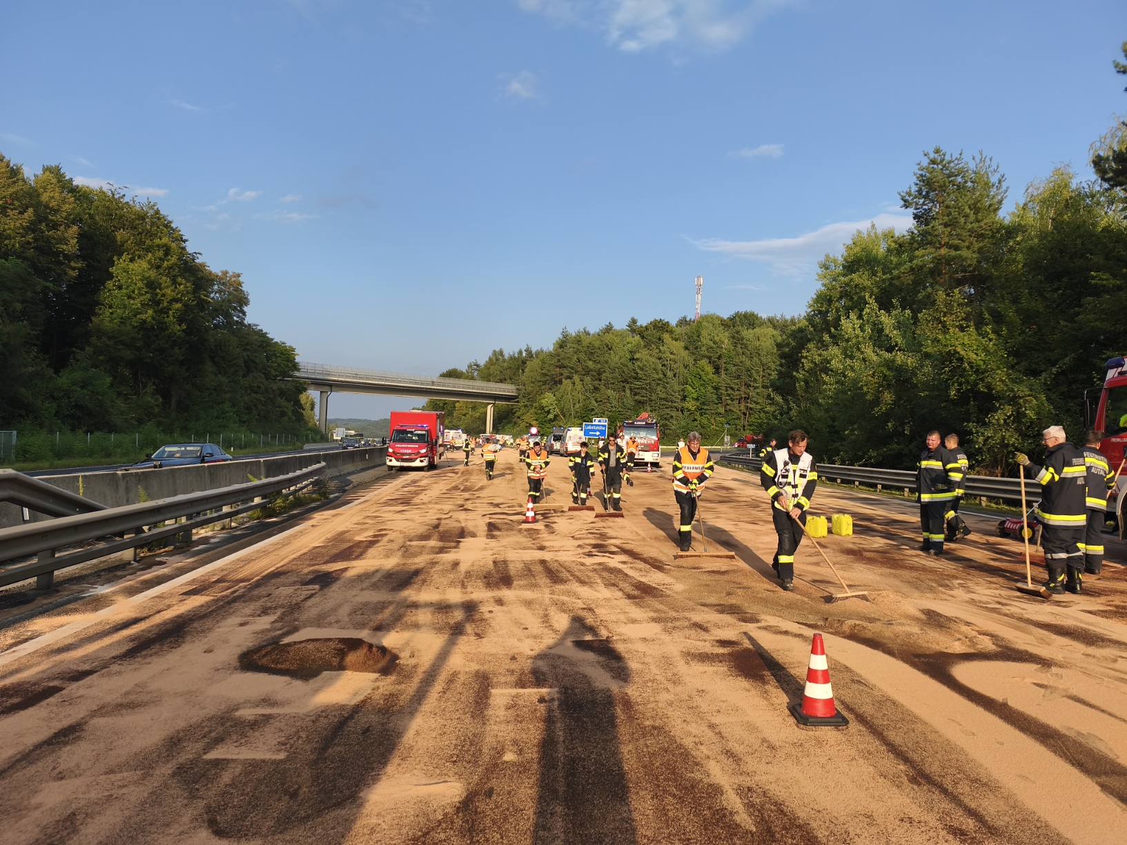 Am 17.08.2025 um 17:42 Uhr wurde die FF Autal gemeinsam mit der FF Nestelbach b. G., FF Ludersdorf, FF Gleisdorf und FF Raaba zur einer Massenkarambolage nach Dieselverlust eines LKW auf die A2 Südautobahn Fahrtrichtung Wien auf Höhe Abfahrt Laßnitzhöhe gerufen. Am Einsatzort eingetroffen stellte der Einsatzleiter (FF Nestelbach) folgendes fest: Es war zu einer Massenkarambolage mit ca. 50 beteiligten Fahrzeugen nach einem massiven Dieselaustritt aus LKW durch einen aufgerissenen Tank gekommen. Es wurde umgehend eine Totalsperre der A2 veranlasst, die erst gegen 21:30 Uhr wieder aufgehoben werden konnte. Hauptaufgabe der FF Autal war es den ausgelaufenen Kraftstoff zu binden. Leider wurden auch zahlreiche Personen unbestimmten Grades verletzt. Eine Person musste mit dem Christopherus C 12 Hubschrauber in ein Krankenhaus gebracht werden. Die FF Autal wünscht allen Verletzten baldige Genesung. Seitens der FF Autal konnte um ca. 22 Uhr der Einsatz beendet und die Einsatzbereitschaft wieder hergestellt werden. Danke für die gute Zusammenarbeit aller eingesetzten Kräfte.